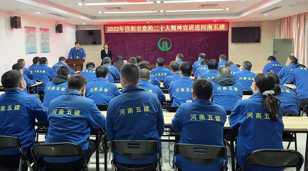 學習好、宣傳好、貫徹好黨的二十大精神,是當前和今后一個時期的首要政治任務。11月18日上午,2022年信陽市黨的二十大精神宣講進河南五建
